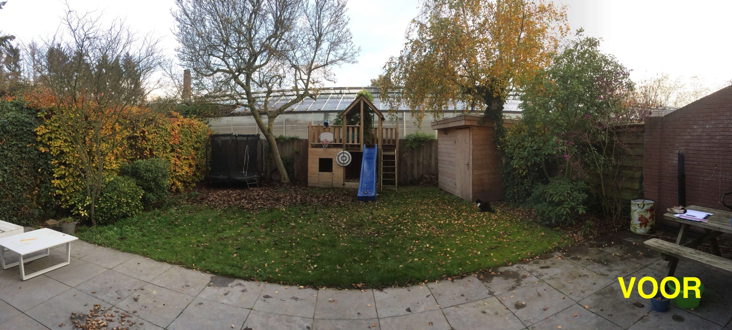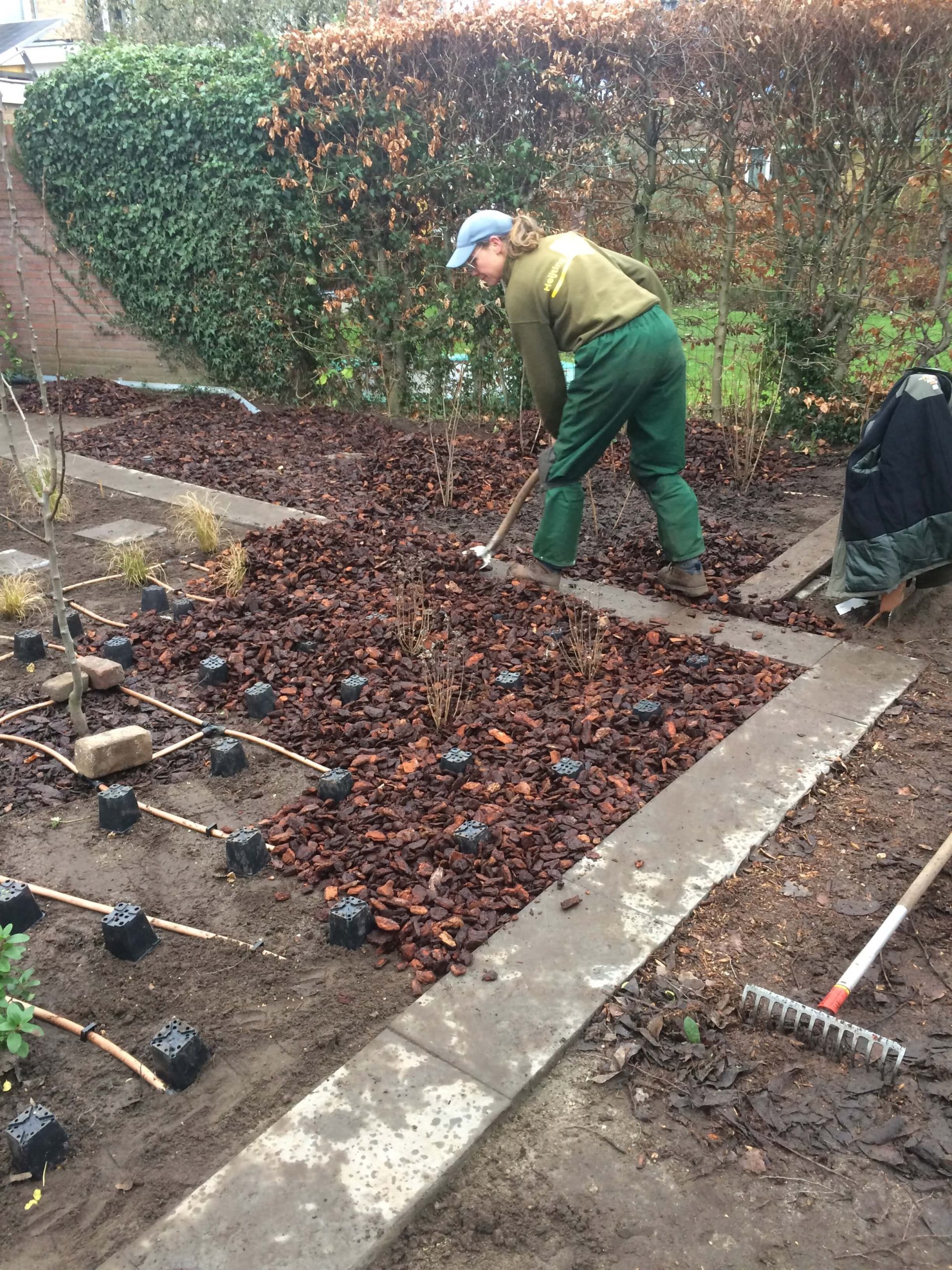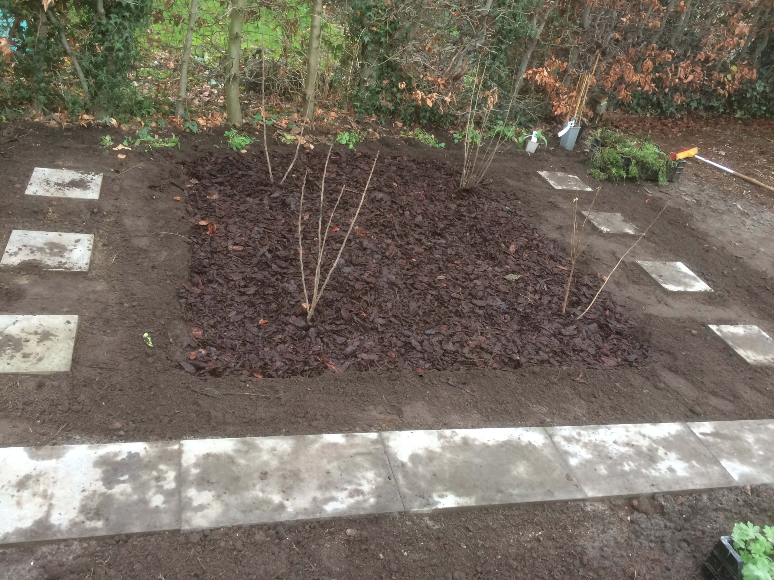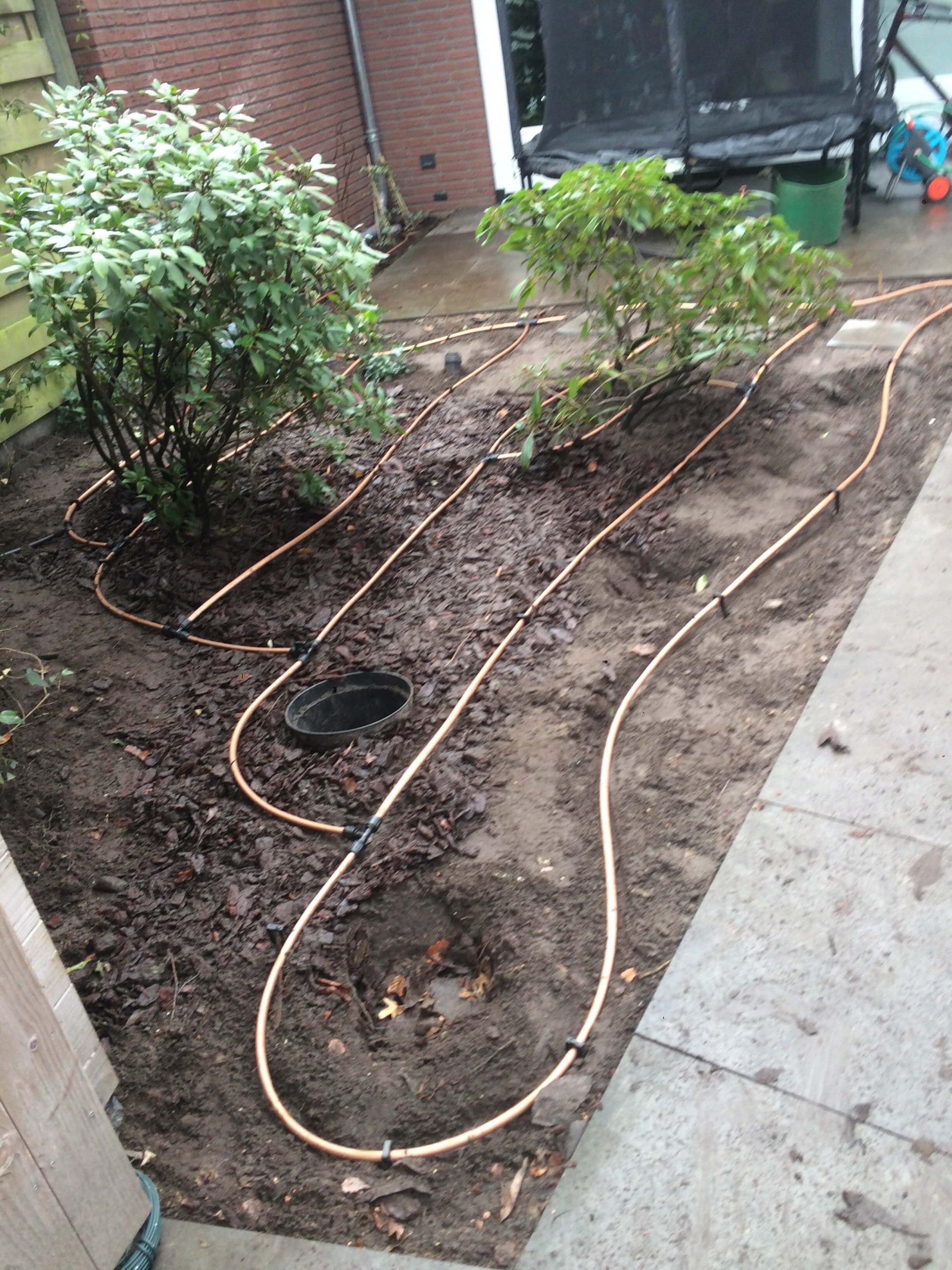 Vanuit drie regenpijpen wordt het water drie verlaagde zone’s in geleid.