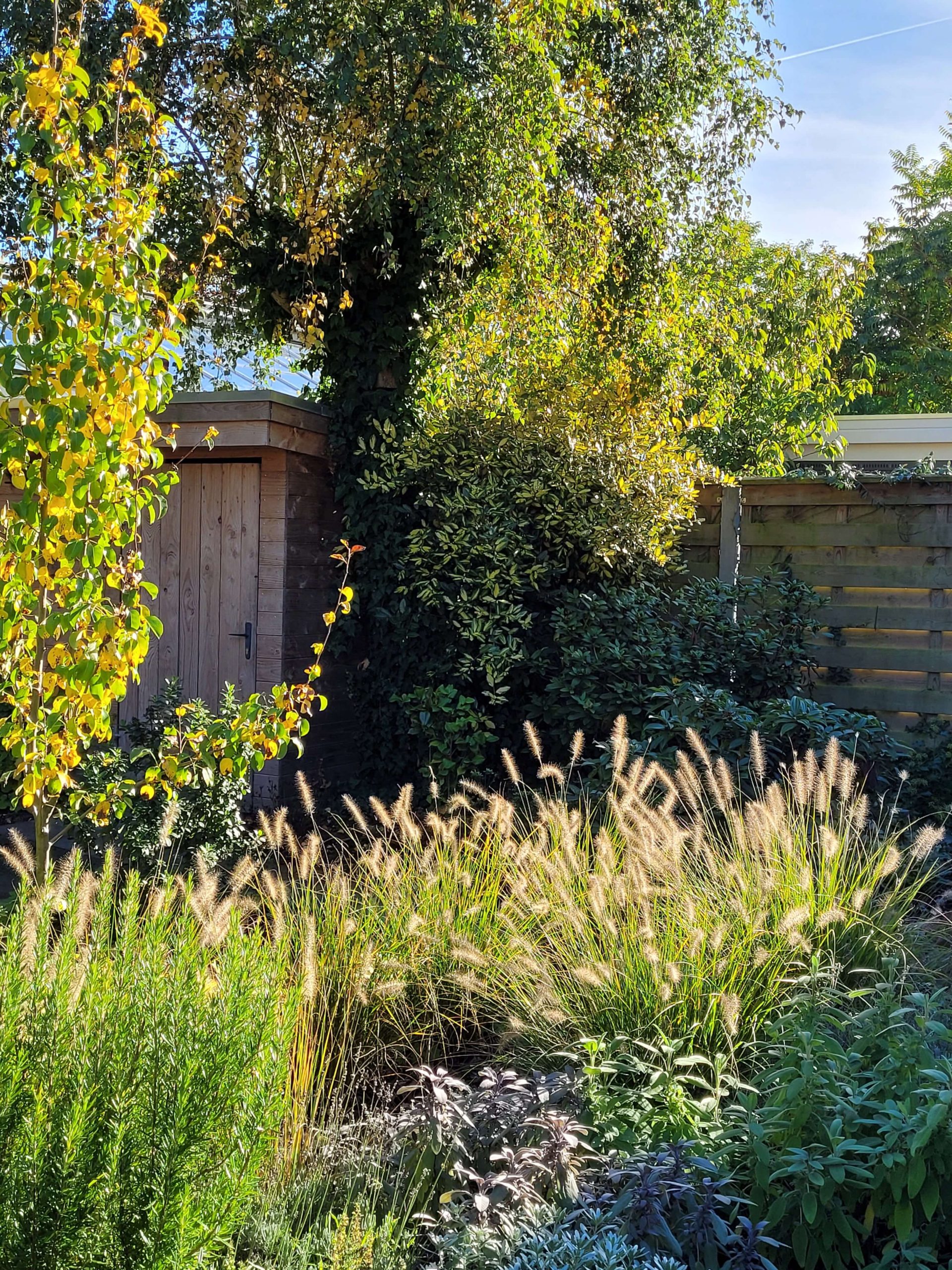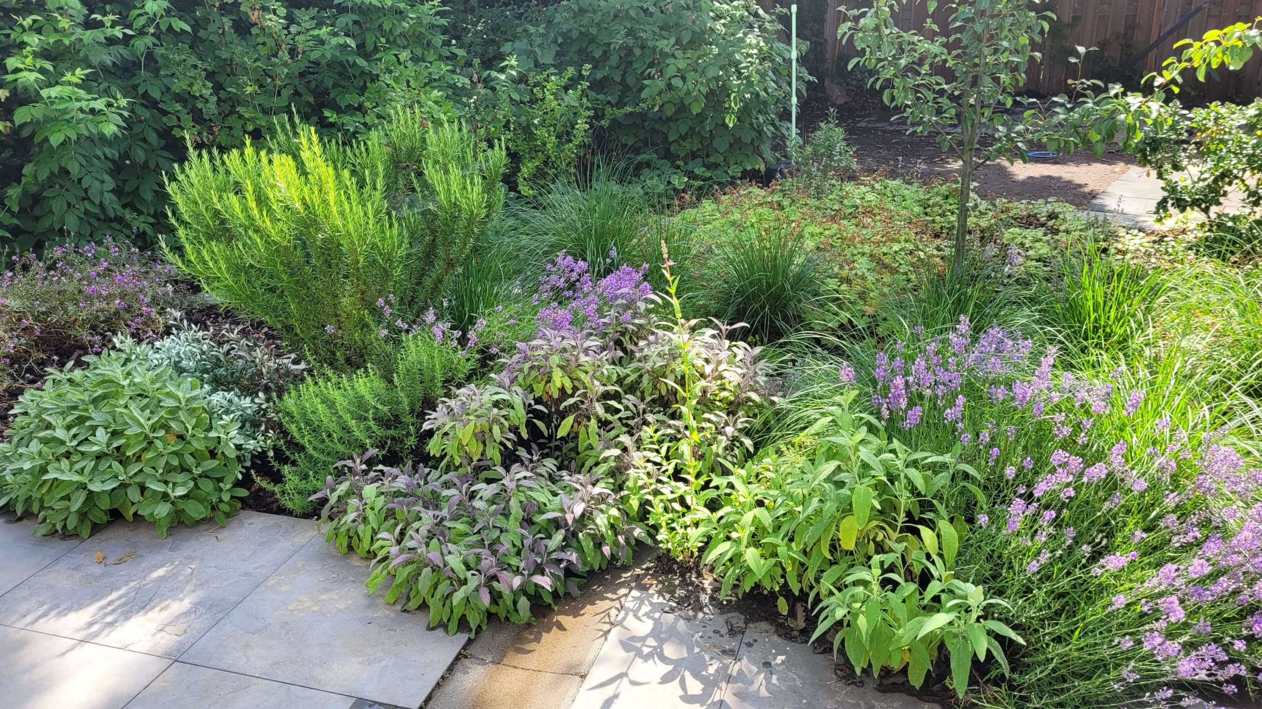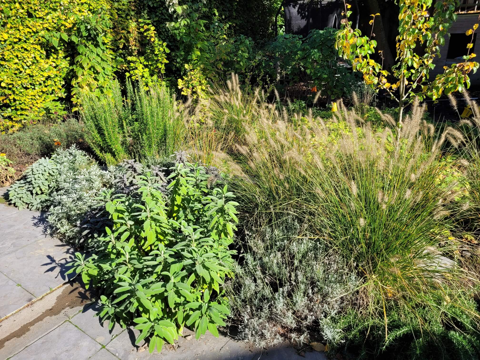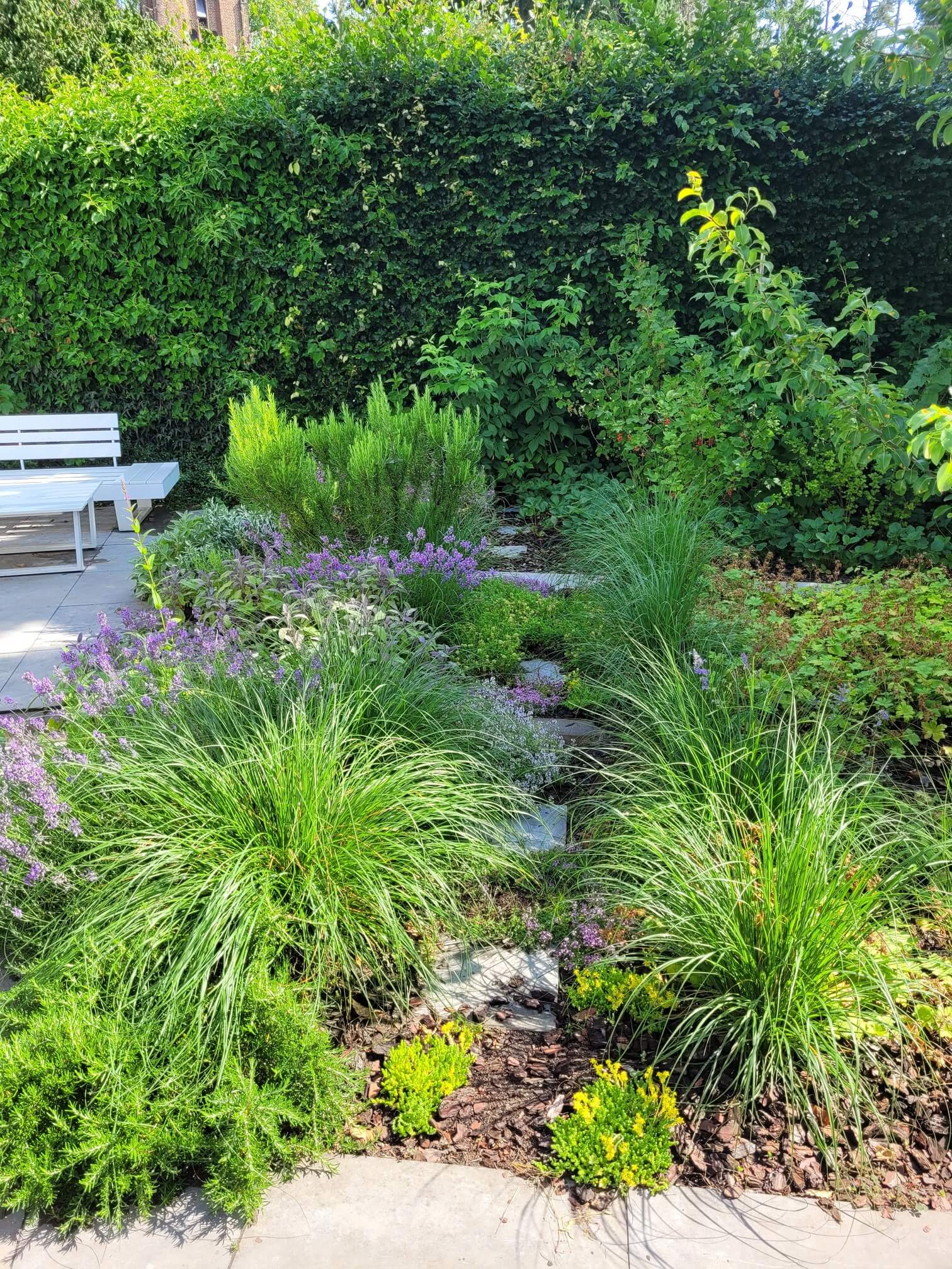 Vanuit drie regenpijpen wordt het water drie verlaagde zone’s in geleid.